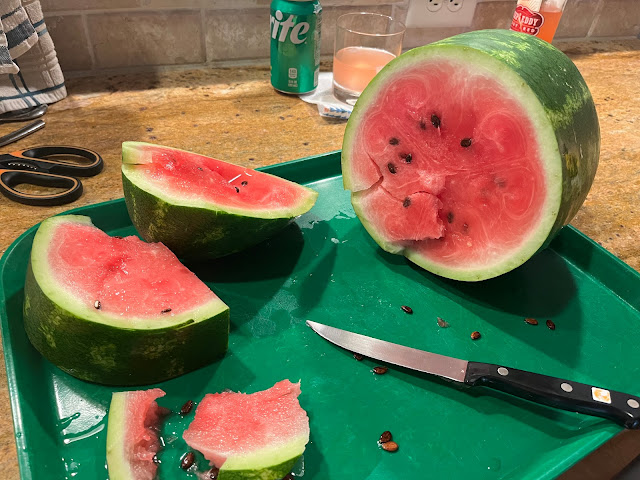 I'm going to add this in here too.... we grew a watermelon!